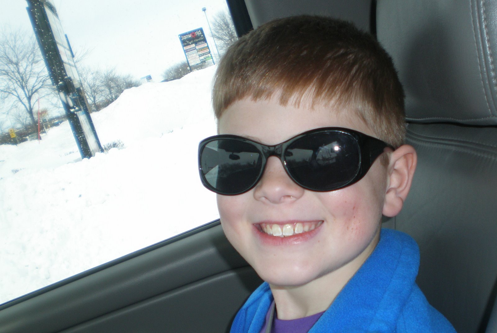 Last week, the boys had a snow day and they needed to get out, so we drove around to check out all the snow...it was very bright out and Sam wore a pair of my OLD sunglasses...he looks like a little Harry Carey!